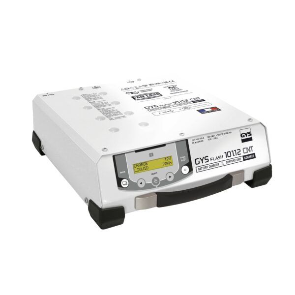 The GYSFLASH 101.12 Charger CNT is a CONNECTED, high-power, 100 A charger with inverter technology. It can maintain a 12 V lead or lithium battery at a perfectly stabilised voltage during the diagnostic process. It will deliver the best charging cycle recommended for the maintenance of the most advanced vehicles on the market. Its USB connectivity makes it 100% customisable.